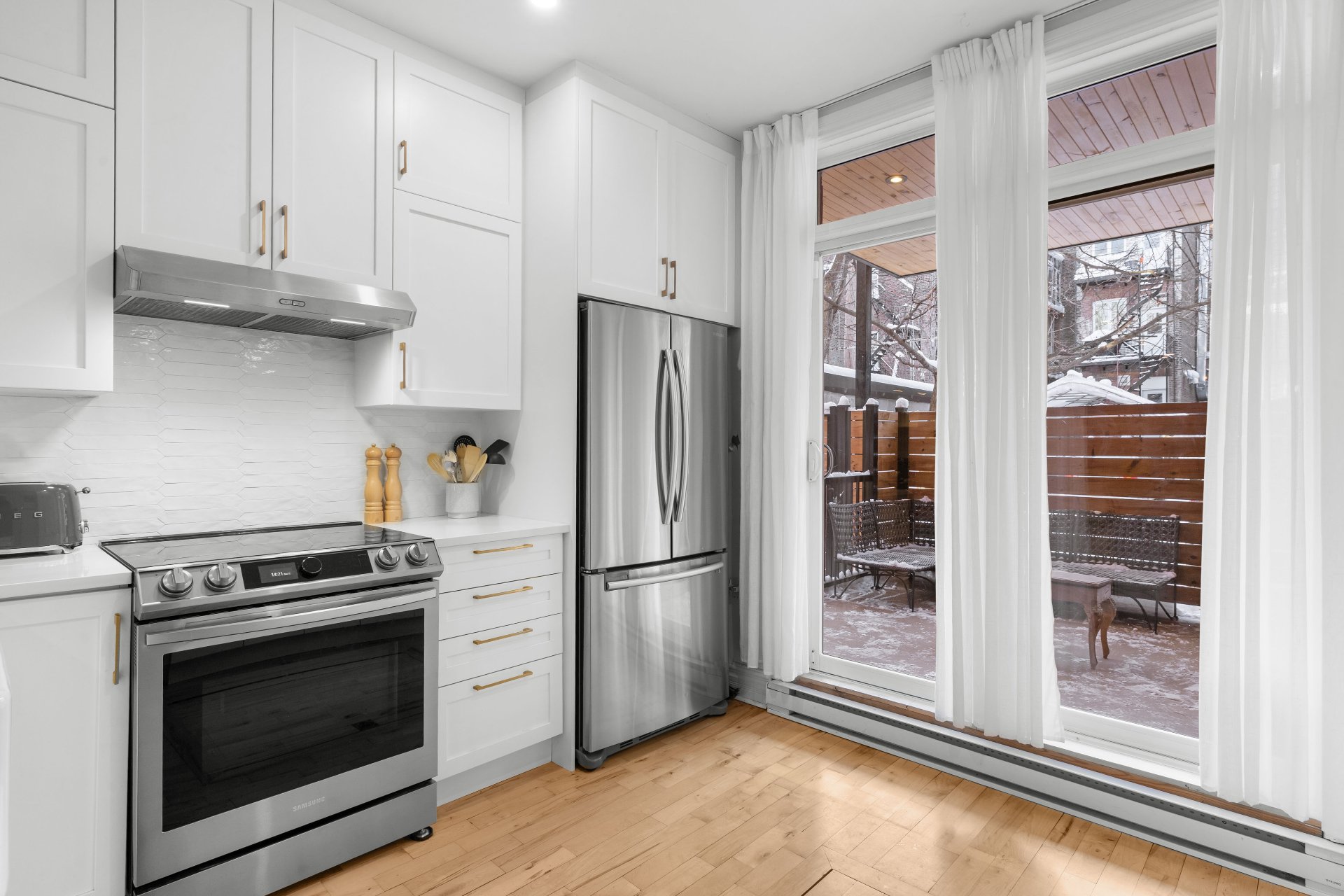 patio facilitant les déplacements de la cuisine vers la