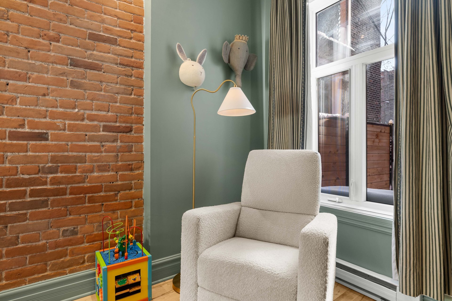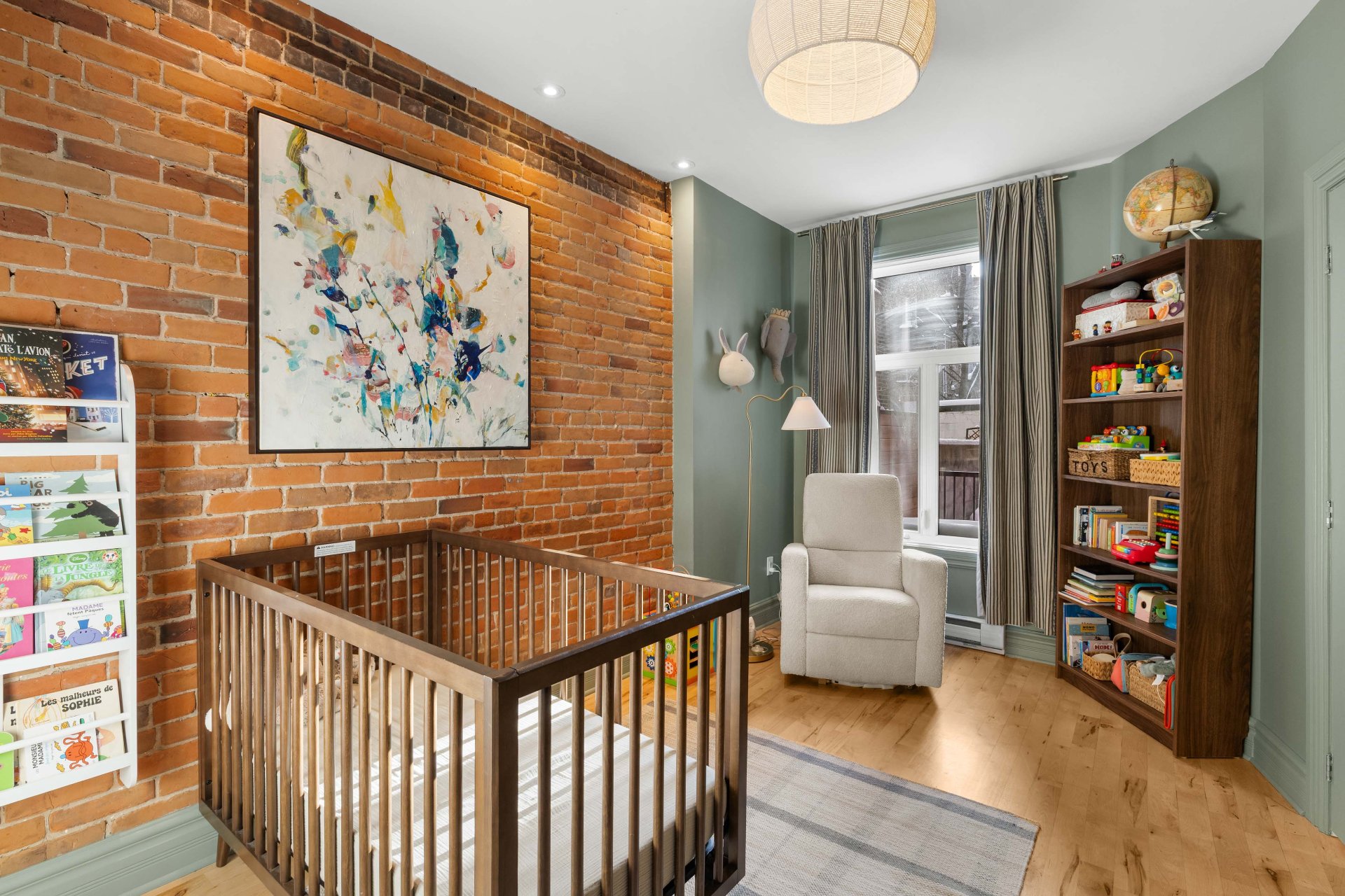 *Planchers de bois franc, murs de brique apparents et