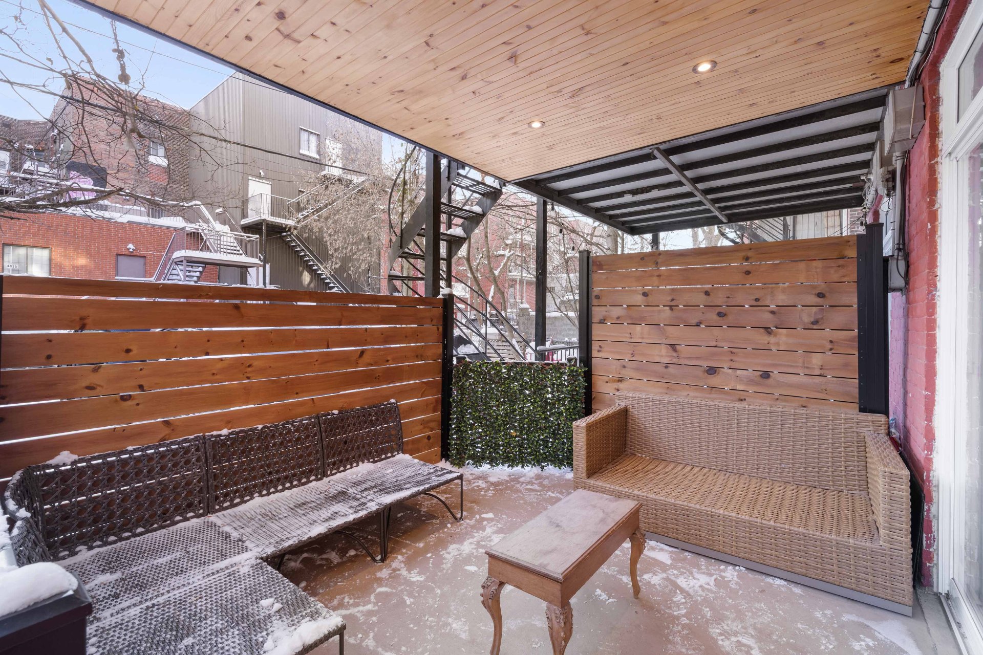 Impossible de résister au charme de ce condo clé en main, situé au rdc d'une petite copropriété de 6 unités. L'espace de vie à aire ouverte propose un aménagement convivial et rassembleur, mis en valeur par de magnifiques murs de brique apparents et une cuisine moderne avec comptoir lunch. À l'extérieur, une terrasse privée couverte et une petite cour bien aménagée sur le côté de la propriété. Un espace de stationnement à l'arrière, accessible par la cour et situé dans une ruelle déneigée par la ville, ajoute un atout appréciable. Idéalement situé à proximité du métro Laurier, des commerces, des parcs et de tous les services.